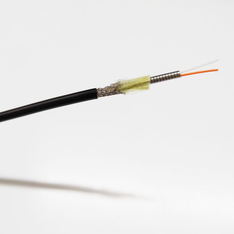 耐温型铠装测温光缆是由螺旋不锈钢软管内置 1~2 芯传感光纤,软管外加高模量凯夫拉芳纶纱、编织网及特种塑胶外护套组成。护套采用了铁弗龙(聚四氟乙烯)这种特殊材料,克服了传统螺旋钢管铠装型测温光缆高低温范围狭窄的缺点,使其长期使用温度扩展到-60℃~120℃,温度可以达到 150℃,其适用范围得到了扩展。此外,铁弗龙材料独特的导热快、绝缘电阻高、耐磨、耐化学腐蚀、不亲水、不亲油、密度高等特点,使光缆的适用领域得到扩展。目前产品广泛应用于电力、石化等测温领域。