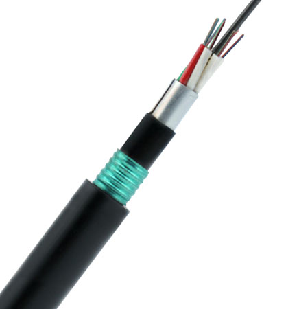 结构是将外经是125μm内经是9μm、62.5μm、50μm的单模或多模裸纤套入用高模量材料制成的松套管中,松套管内注满防水化合物,缆芯的中心是一根表面覆有PE的金属加强芯,松套管和填充绳紧凑的围绕中心加强芯绞合成圆形的缆芯,双面涂塑钢带PSP纵包,内在充以阻水填充物后挤制聚乙PE护套制成。